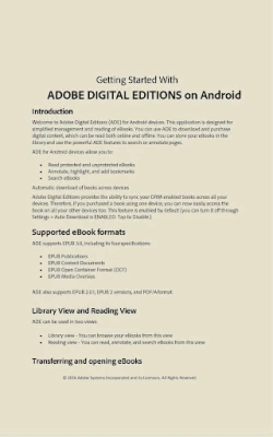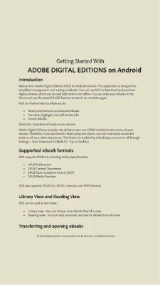 Το Adobe Digital Editions είναι μια ενιαία εφαρμογή ανάγνωσης eBook για τα προστατευμένα με Adobe DRM βιβλία σας. Διαβάστε αρχεία EPUB και PDF online ή offline, σε Android, iPad, Mac και PC. Οργανώστε τη βιβλιοθήκη σας και δανειστείτε βιβλία από δημόσιες βιβλιοθήκες. Χωρίς διαφημίσεις.