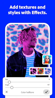 Το Photoshop on mobile είναι μια εφαρμογή επεξεργασίας εικόνων με μεγάλη ποικιλία δωρεάν εργαλείων. Είτε ξεκινάτε τώρα είτε είστε έμπειρος χρήστης, μεταμορφώστε εύκολα μία φωτογραφία ή συνδυάστε πολλαπλές σε ένα ενιαίο, εντυπωσιακό σχέδιο.
