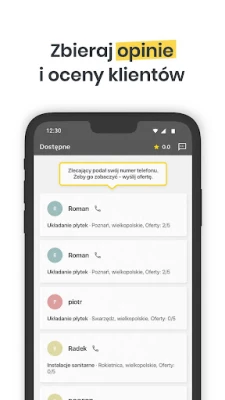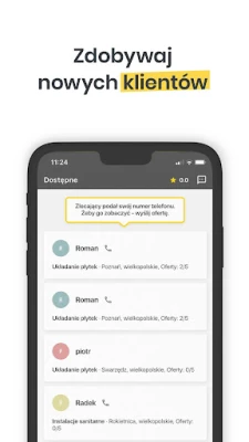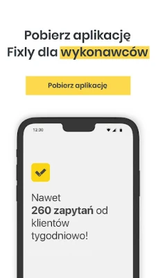 Το Fixly dla wykonawców είναι η εφαρμογή για επαγγελματίες υπηρεσιών. Συνδέει τεχνίτες, κομμωτές, μεταφορείς, καθαριστές και άλλους ειδικούς με δυνητικούς πελάτες. Ανακαλύψτε νέες ευκαιρίες εργασίας, στείλτε εξατομικευμένες προσφορές και αναπτύξτε την επιχείρησή σας εύκολα και γρήγορα.