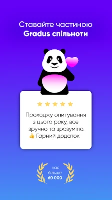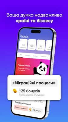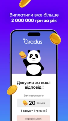 Με το Gradus, συμμετέχετε σε εθνικές έρευνες, εκφράζοντας την άποψή σας σε σημαντικά θέματα. Διαμορφώστε κρατικές αλλαγές και επηρεάστε παγκόσμιες αποφάσεις. Κερδίστε χρήματα για την ενεργό σας συμμετοχή.